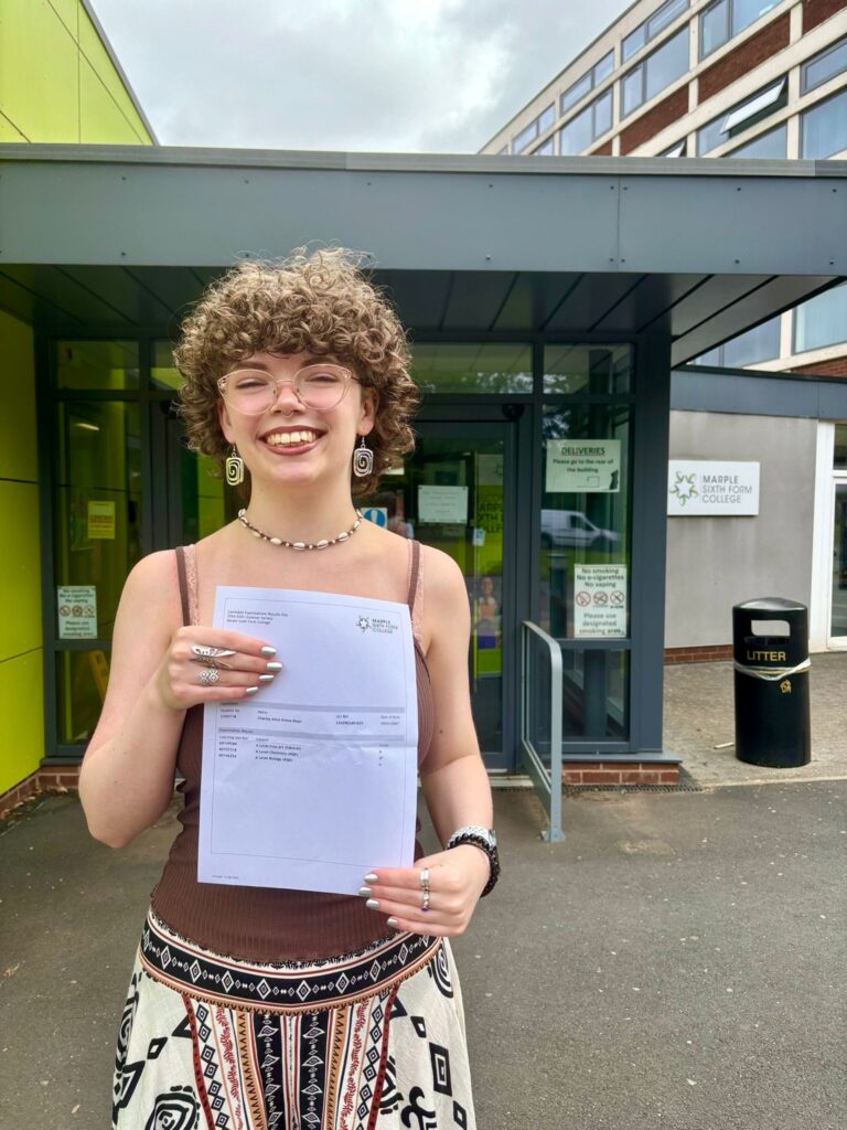 One of this year’s stand-out achievers is Marple Sixth Form College student Charley Dean, who combined her creative and scientific talents through A Levels in Fine Art, Chemistry and Biology, achieving AA*A. She is progressing to study Animation at Sheffield Hallam University on a four-year course with a work placement or freelance year.
